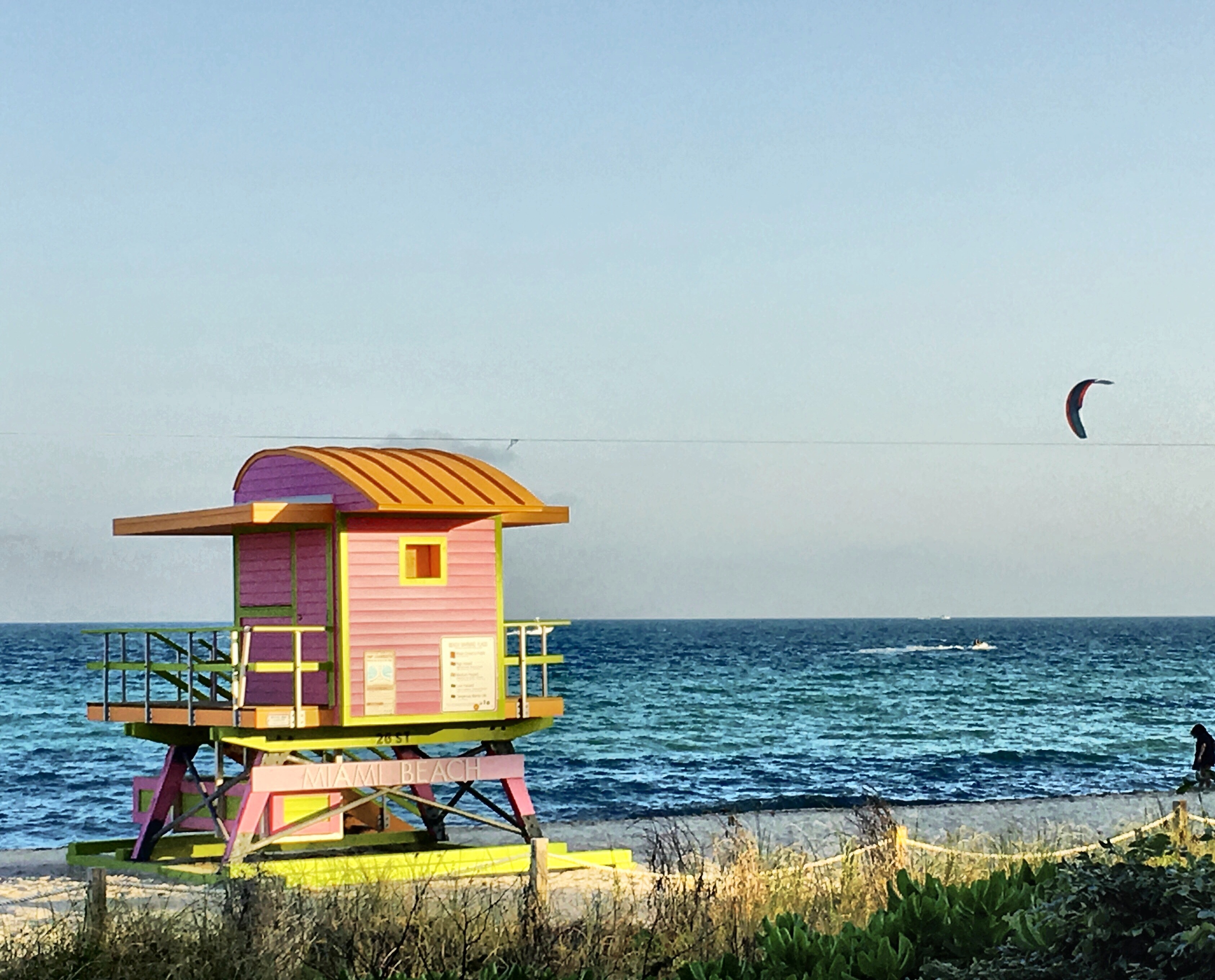 Sometimes I watch the kite surfers, looks so difficult, so fun, I am on the fence on that one. Should I try? The wave runners are really cool, back and forth dropping off / picking up tourists that are dying to try this sport. There is no real surfing in Miami, no waves, which I kind of like. Taking a dip in Miami’s blue ocean on a hot and humid 85F degree day, is bliss. It feels like the blue ocean just swallows you up and cools you down in big swoop.